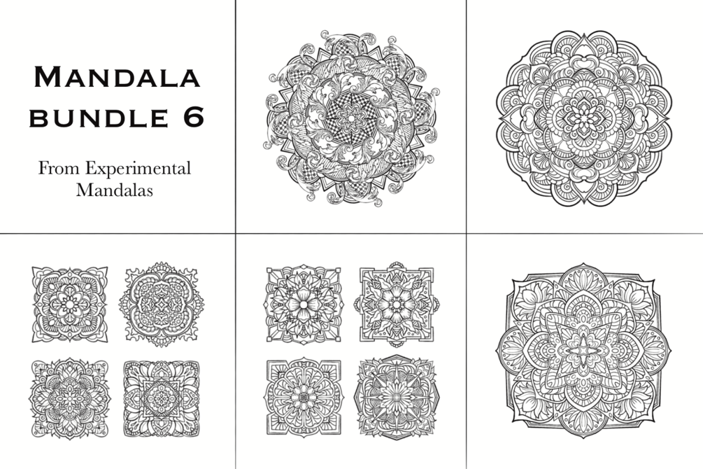 Coloring pages features 3 big ones and 8 small unique mandalas